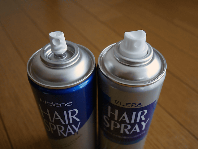 エレーヌはダイエーで税込398円、エレラはローソンで税込508円だった(※店舗により販売価格は異なるかもしれない)。成分はほぼ一緒。110円分の格差はどこだろう。缶もフタの形状も一緒だが、エレラのフタのほうがパールがちりばめられたプラスチックで、少しだけ高級そうである。そして、噴射口が違うことに気付いた。エレラのほうがハイテクなのだ。エレーヌは圧が強く狭域に集中するといった噴射具合に対し、エレラは優しい圧で霧が細かく広範囲に行き渡る。