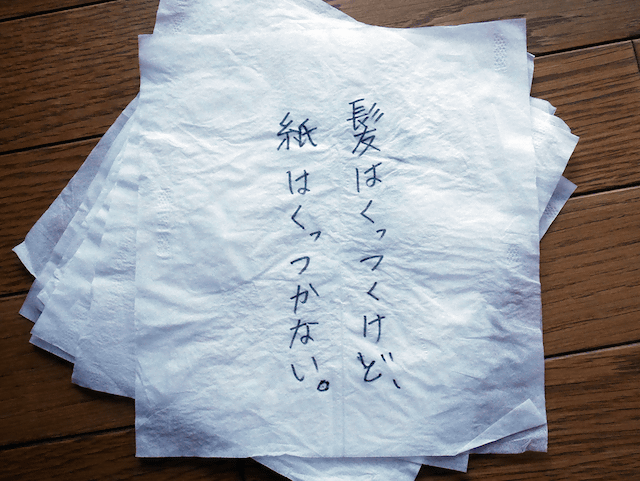 早くも玉砕である。いろいろ試行錯誤したものの、ダメだった。ティッシュすらくっつかないのであれば、普通の紙なんて……、案の定無理だった……。