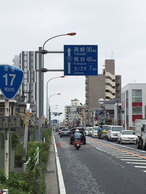 苗場スキー場までは国道17号をひたすらにまっすぐ。とりあえずの目的地である高山村も同じだ。これはかなりありがたい。行き方を考えたり調べたりして無駄な体力を消耗しなくて済むじゃないですか。とりあえず僕が住む葛飾区から17号に向かうが、葛飾区とか足立区あたりは本当に自転車で走りにくい……。道もガタガタだし、わけわかんねーくらい飛ばしてるトラック(とかミニバン的なやつ)も多いし、かなり慎重になるわぁ。17号に出るまででけっこう時間がかかってしまった。