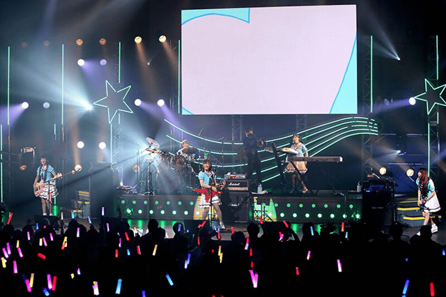 <古びた質屋の蔵で出会った「星型のギター」に初めてのときめきを感じ〜>という冒頭のストーリー。泣く子も黙るジャパメタ変形ギター・ESPランダムスターを美少女が持つ、なんていうおっさんホイホイな案件であることも注目である。その反面で演奏&技術面やパフォーマンス面で手厳しく見てしまう保守的なロックファン心もあるわけだが、こういうものは細かいこと考えずに楽しんだほうが勝ちだ。筆者自身は『バンドリ!』の存在は知っていたものの、実際に観たこともなければちゃんと聴いたこともなかった。本稿執筆にあたり、敢えて下調べや予習をせずに本ライブに臨んだ。