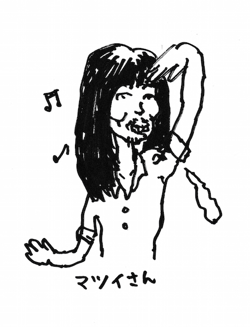 見た目はアレとして、実際頭に暴の付く反社会的勢力の方がバンドをやっていたのかというとそうではない。メンバー4人中3人が美大生で、マツイさんも当時多摩美の彫刻科に通う学生だった。ああいったトゥーマッチな表現形態と見た目は、美意識が過ぎてしまった結果なのだろう。兵庫県出身でとにかくギャグセンスが抜群&どおくまんプロのマンガのキャラクターがそのまま実体化したようなアクの強さと適当さと明るさと狂気とセコさがないまぜになった人物で、それでいて人当たりも意外と良く、マリア観音のライブに通い詰めているうちに仲良くなって家に遊びに行くようになった。マツイさんの家に行くと、それは見事に水草を配置したベタが群れ泳ぐ美しい水槽と、キッチリ温度管理された番のヒョウモントカゲモドキの水槽が綺麗に並べられており、好きなものへの執着と凝りようは凄まじく、その爪弾くギター同様に精緻で複雑ながら情緒さえ表現されており惚れ惚れとした。素直に言えば、憧れの存在であり、尊敬すらしていたのである。